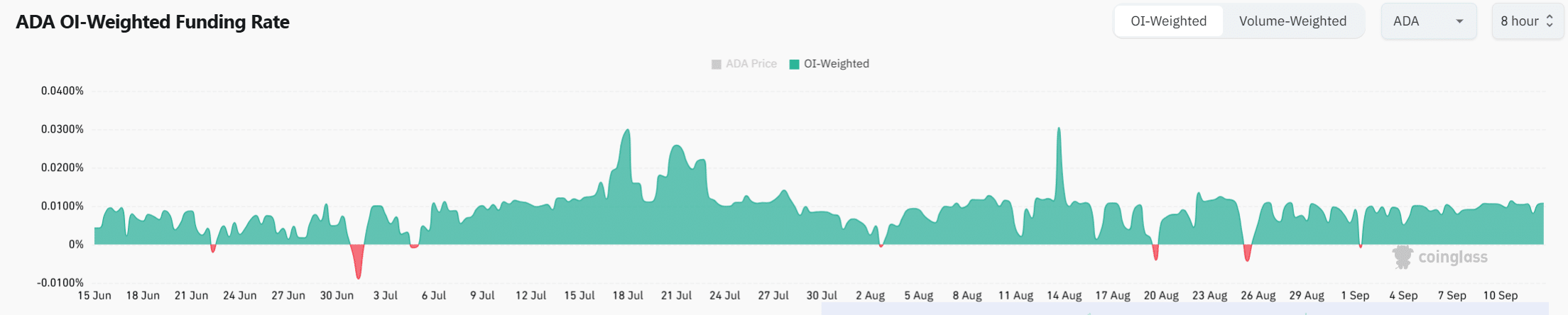 Encouragingly, this positioning aligns with whale accumulation on-chain, forming a strong convergence of sentiment across both spot and derivatives markets. Together, these dynamics create strong bullish undercurrents for ADA.