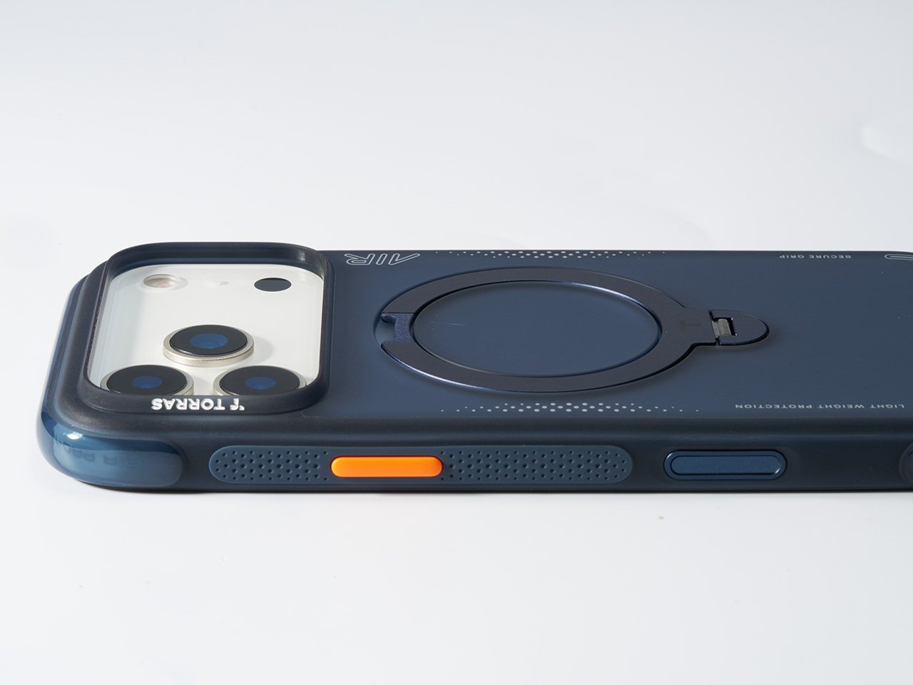 While this focus on ergonomic protection is impressive, the case’s true centerpiece is its integrated stand. Many manufacturers have attempted to integrate kickstands into phone cases, but most feel like afterthoughts. The Q3 Air’s 360-degree spin stand technology represents the third generation of TORRAS’s stand design, and the refinement shows. When closed, it sits completely flush with the back panel, maintaining the case’s slim profile. When deployed, it rotates smoothly and locks securely at any angle you choose. This is not just convenient for watching videos; the stand transforms your phone into a versatile tool for video calls, following recipes in the kitchen, or even serving as an impromptu mirror when hung on glass surfaces like bathroom tiles. The magnetic strength is robust enough to support these varied use cases while remaining easy to adjust when needed. Its MagSafe compatibility also deserves special mention. Many third-party cases compromise magnetic strength in favor of other features, but the Q3 Air maintains strong magnetic alignment that ensures flawless compatibility with MagSafe chargers and accessories. It is the kind of seamless integration that Apple users expect but rarely get from third-party accessories.