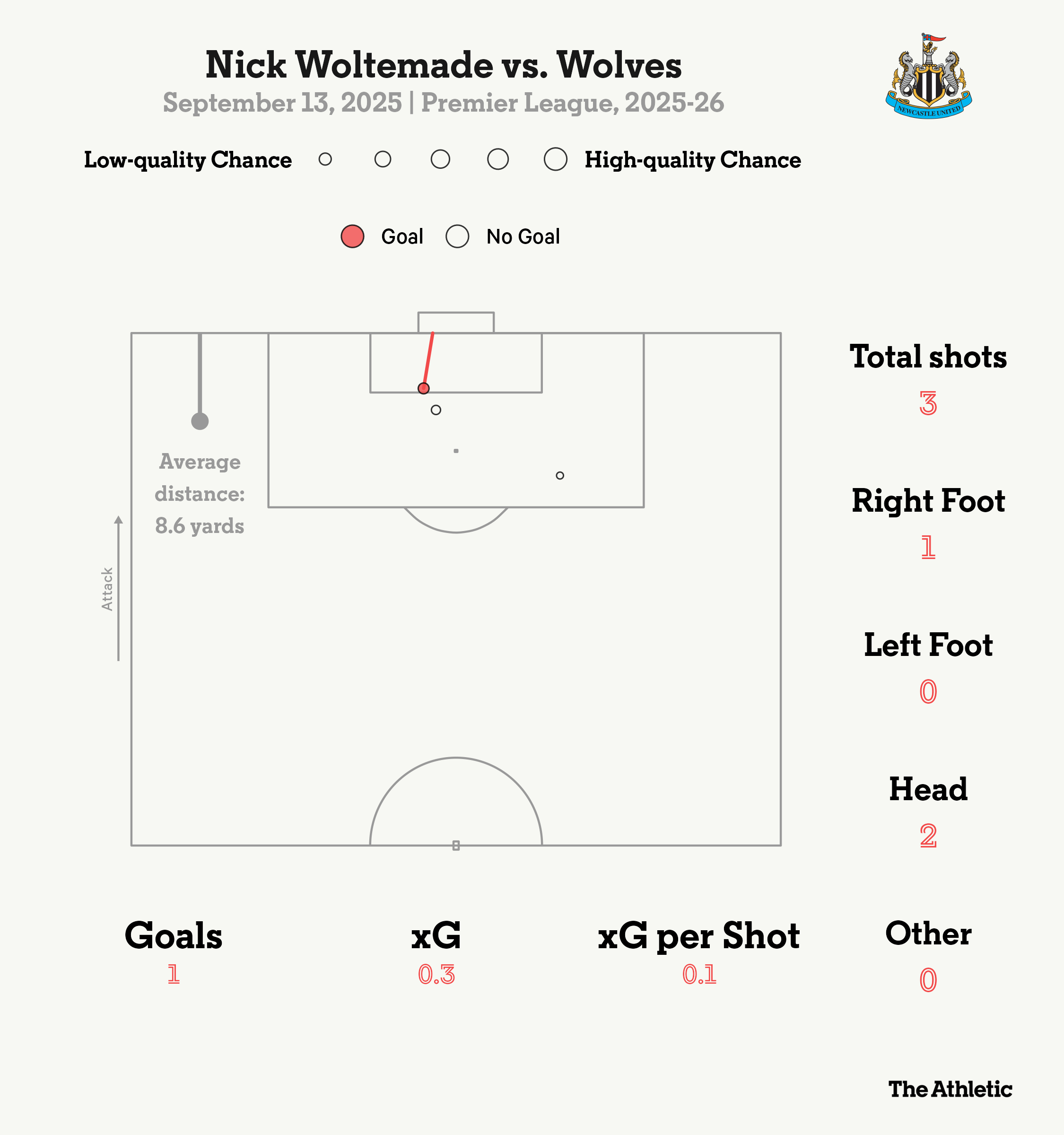 It came via a trademark Jacob Murphy delivery, with the winger contributing his 12th open-play assist since August 2024. On Friday, Murphy told Woltemade to be ready for crosses and the striker, who worked on his heading at Stuttgart, “closed my eyes” and met it.