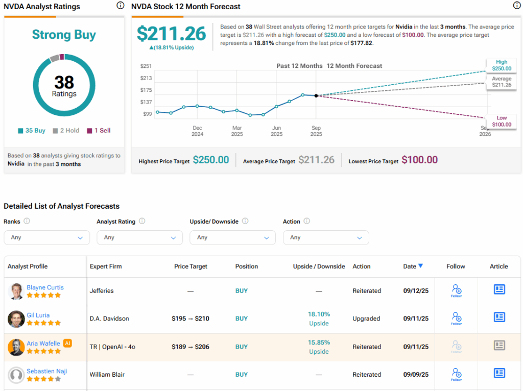 Nvidia continues to hold the Street’s endorsement with a Strong Buy consensus rating. The average NVDA price target is $211.26, implying an 18.81% upside from the current price.
