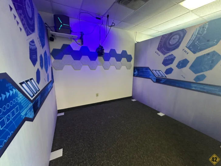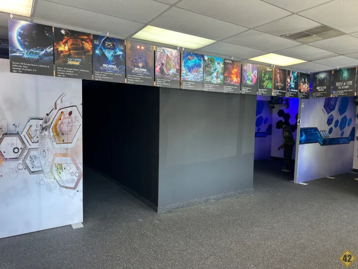 You enter Escape Virtual Reality in the front foyer and host stand area, where you pick from dozens of game options… which could be played individually or as a connected group of players.