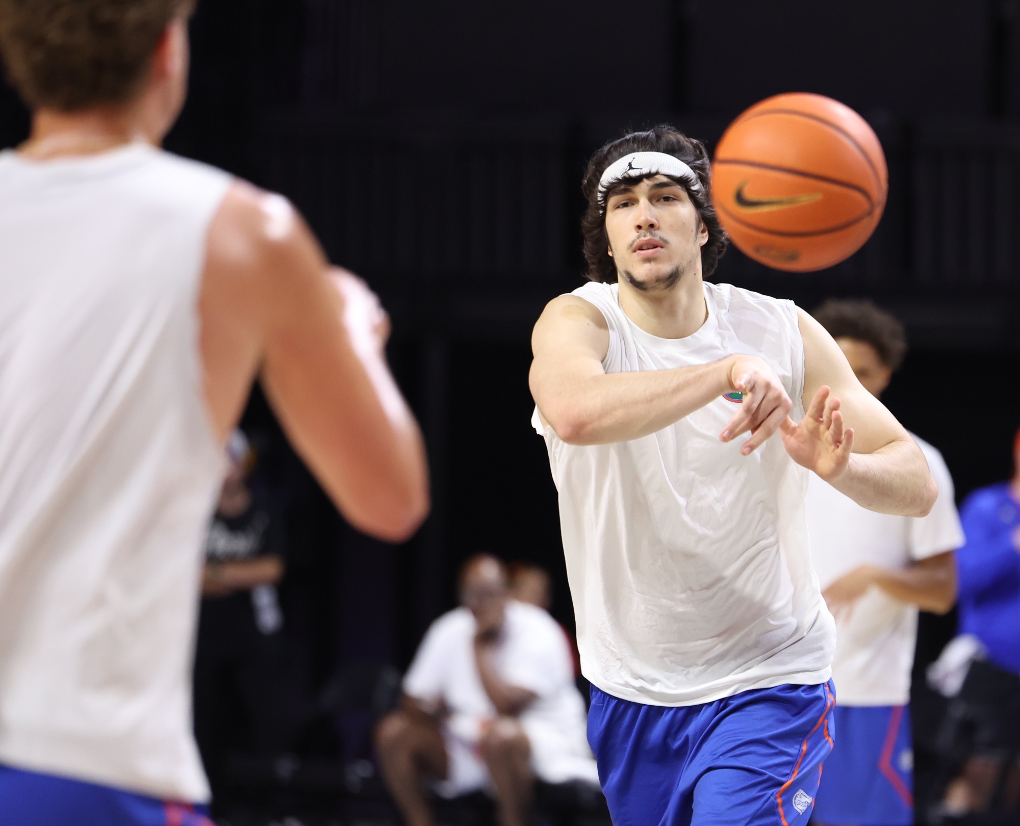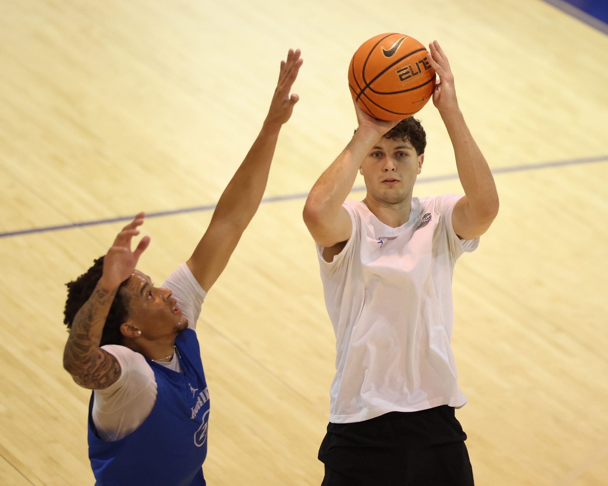 Brown, Isaiah’s older brother, was a career double-figure scorer at Ohio, where as a junior in ’24-25 he averaged 13.2 points and shot nearly 39% from the 3-point line before his season ended March 1 with a shoulder injury. Brown underwent surgery, entered the transfer portal and landed at UF, where he spent the offseason rehabbing and slowly working his way back on the court. The 6-4, 210-pound Brown had been running and shooting for weeks, but was not officially cleared for contact until last week, so he’ll start the preseason playing from behind in the race (alongside his brother, as it turns out) for minutes as the backup wing. The older Brown has six career games with at least 20 points (with a career-high of 28) and a dozen games with at least three 3-pointers. He’s also missed 35 games due to injury (8 as a freshman, 24 as a sophomore, 3 as a junior), so how strong, sturdy and healthy he gets in the coming weeks will play a part in his role. When full-go, though, Brown might be a microwave kind of player along the lines of Klavzar last season, but he definitely was more than just a spot-up shooter over his three seasons in the Mid-American Athletic Conference, evidence by his 50% career from the 2-point area and nearly 77% from the free-throw line on 176 attempts. His resume is good, but he’s only put in one week of real work since arriving in the spring. The coaches will want to see more.