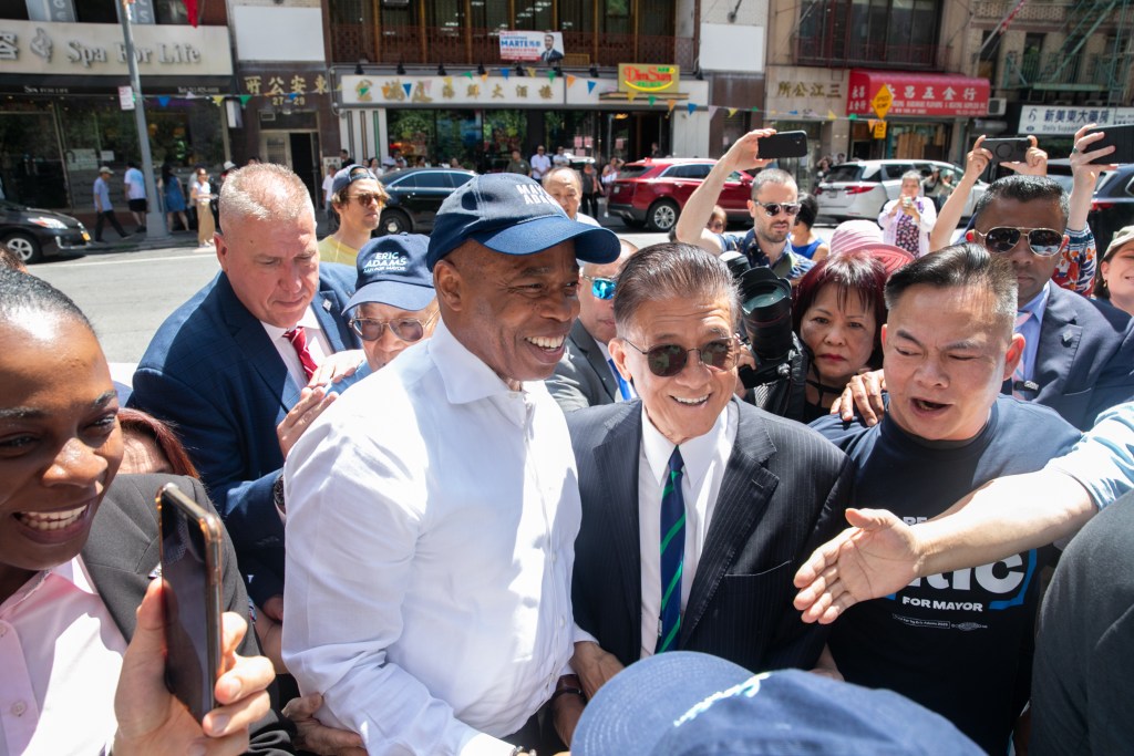 Mayor Eric Adams held a reelection campaign rally in Chinatown, July 18, 2025. Credit: Ben Fractenberg/THE CITY