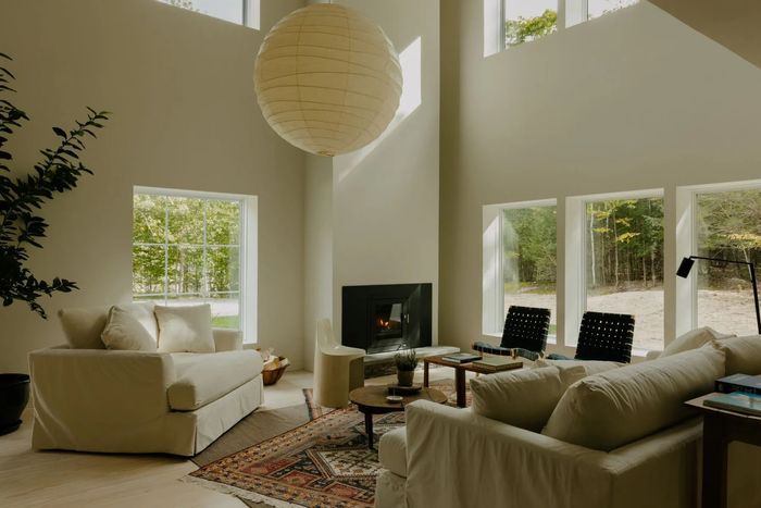A spacious, barn-inspired new build that’s heavy on Scandinavian motifs. There’s white-oak flooring throughout, which plays well with the floor-to-ceiling windows that let in plenty of light and full views of the surrounding woodlands. Along with the two bedrooms, there’s a loft space with a skylight that is currently set up as a Pilates studio but could make for a meditation or indoor stargazing space, or a third bedroom to lure your friends still in the city up on the weekends. The kitchen has a built-in Wolf gas range and oven, plus custom cabinetry. In addition to the woodlands, the property’s 2.2 acres of outdoor space includes a kitchen, a built-in firepit and an outdoor shower, which helps if you’re into wading in the private creek.