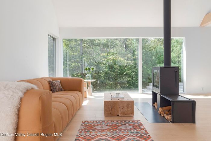 This barn-inspired home in Saugerties, as seen in this listing photo, has warm, airy interiors outfitted modern and antique pieces that its current owners have collected.