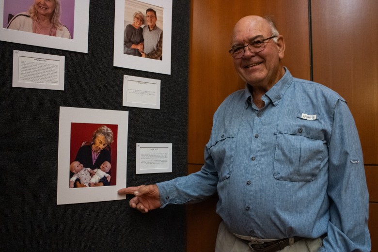 Jim Philpot stands next to a photo of his wife on Sept. 18, 2025. (Ismael M. Belkoura | Fort Worth Report)