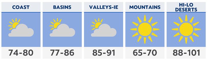 Marine layer clouds will fill into the coast and basins and may sneak into the valleys briefly Saturday morning.