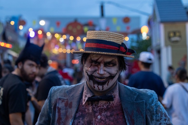 A character lurks at the Terror-Tories at the Howl-O-Scream event at SeaWorld.A clown character lurks at SeaWorld’s Howl-O-Scream event. Credit: Brenda Bazán / San Antonio Report