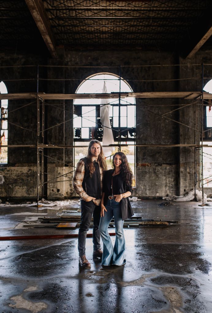 Chefs Jenna and Micah Kinard at the Fort Worth Public Market during construction and restoration of the space. (Courtesy photo | Wilks Development)