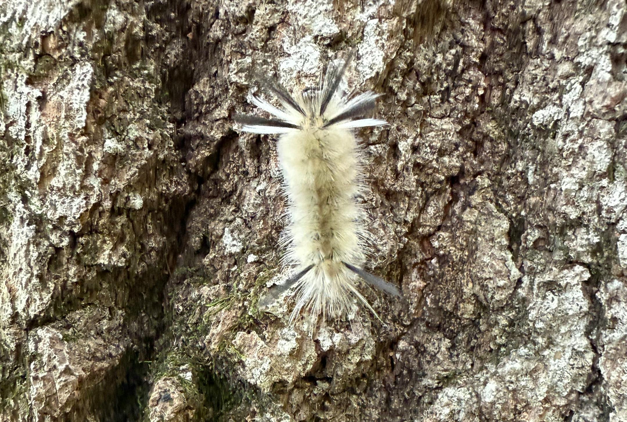 Study them closely to see the clustered hairs that resemble a bottle brush or pipe cleaner. They also sport telltale tall tufts of hair near the head and posterior. Those tufts, or tussocks, resemble rogue grasses that grow taller than everything around it.