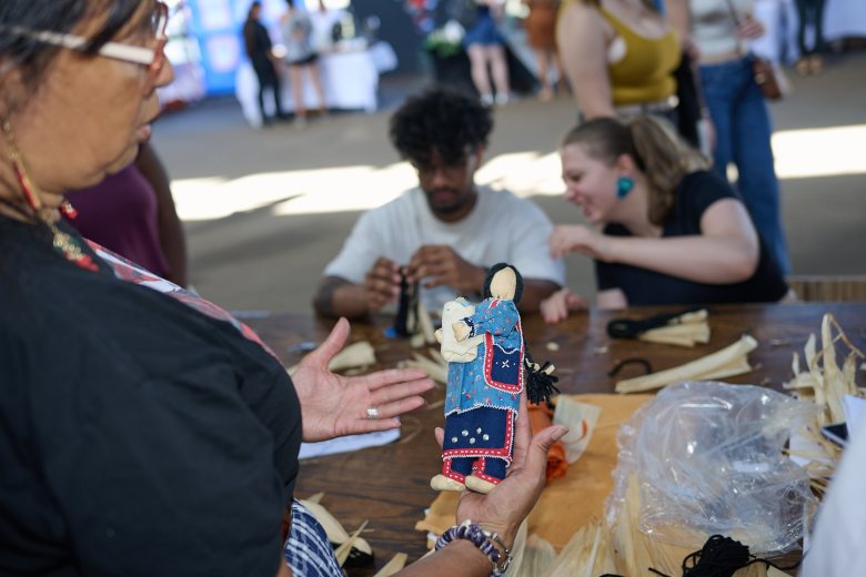 The corn husk doll-making workshop with Dawn Spears was a popular offering. (Hanbit Kwon)