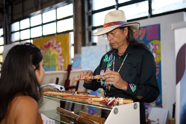 Beyond the workshops and performances, Cherry Street Pier buzzed with authentic Indigenous art and jewelry. Artists shared their craft and the stories behind each piece, bringing the organization’s mission to life. “We coordinate with dancers, drum groups, and artists from across the U.S. and Canada,” Agoyo shared in an email. “We handle travel, accommodations, cultural protocols, and hospitality to ensure participants are supported and traditions upheld.”