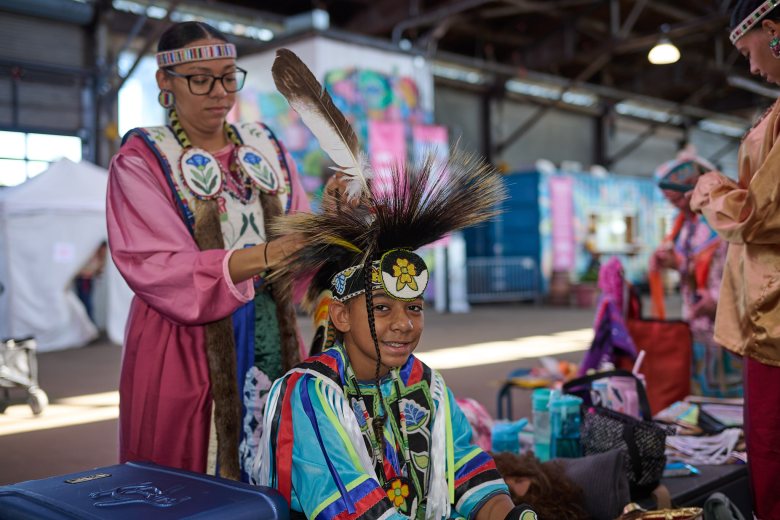 At noon, a Powwow opened the weekend with a powerful Grand Entry, as dancers in full regalia moved into the space to the sound of drums and song. The ceremony set the tone for the day, blending centuries-old traditions with a contemporary celebration of community. The powwow celebration drew participants from over 40 Tribal Nations, whose dance, music, art and craftsmanship highlighted the resilience and richness of Indigenous cultures.