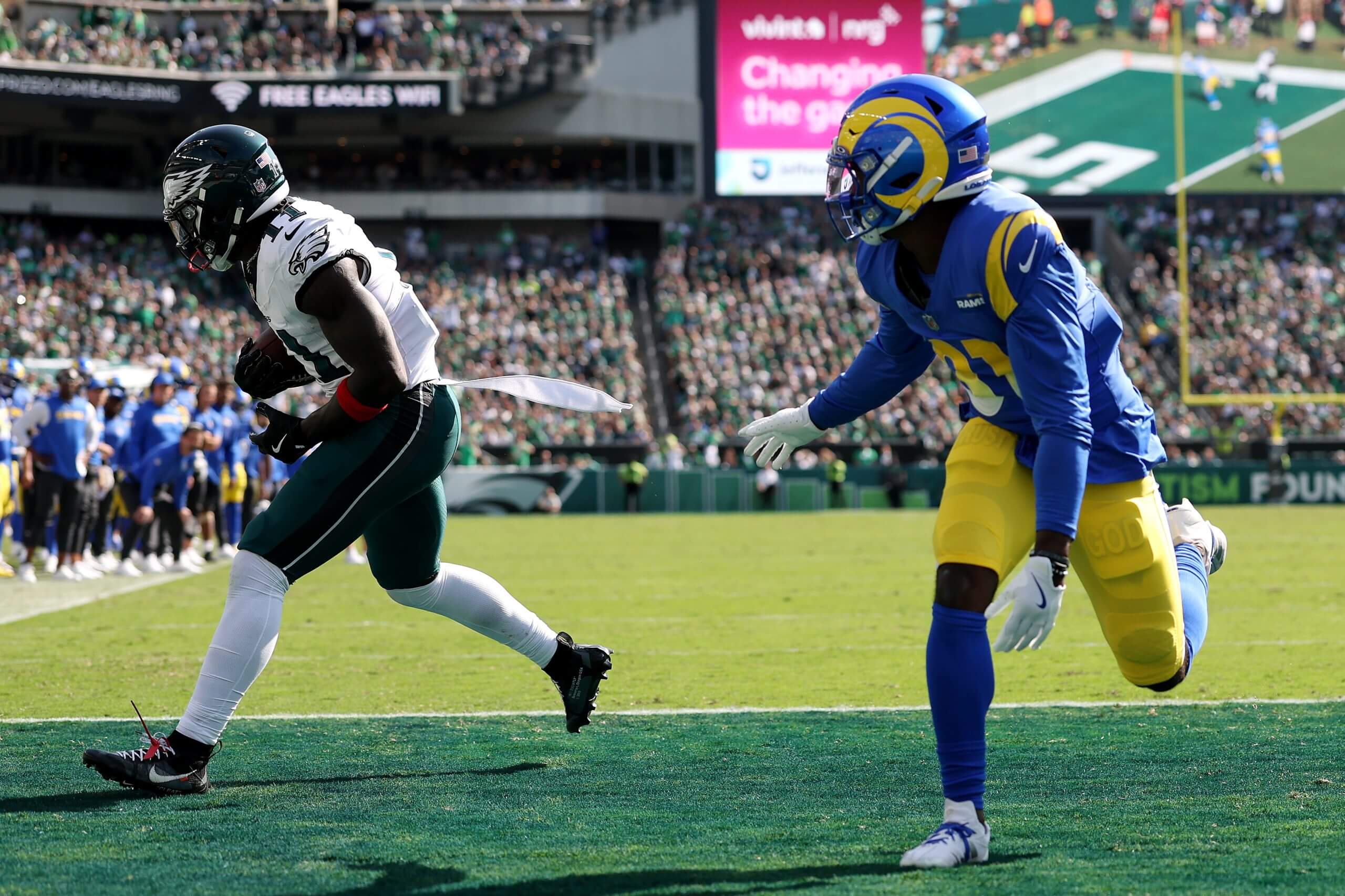 They don’t have cornerbacks who can match up with outside receivers such as Brown and DeVonta Smith. Not many teams do, but that’s the hill the Rams are trying to climb. In the first game after losing Ahkello Witherspoon to a broken clavicle, his roster replacement, Tre Brown, didn’t play on defense. Los Angeles instead trusted a 32-year-old veteran it previously benched in Darious Williams, as well as a 24-year-old reclamation project in Emmanuel Forbes Jr. on the outside.