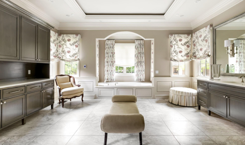 Last year, the Hollisters decided to remodel and expand the primary suite with a sitting area, a gorgeous bathroom, and two walk-in closets, one of which has a secret!