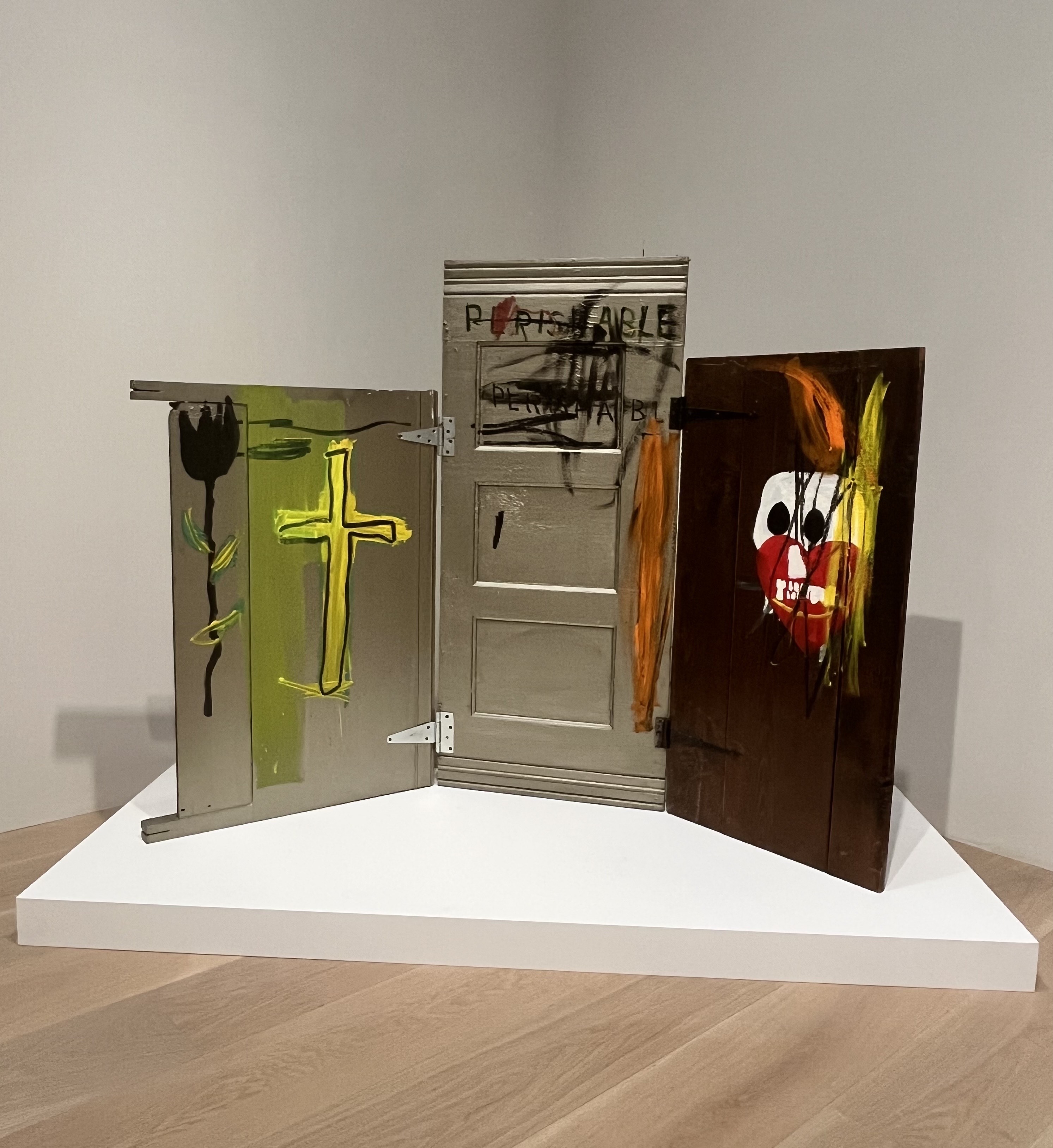 The show maps the decade’s contradictions through carefully chosen works. Jean-Michel Basquiat’s explosive canvases explain why he became art’s first Black superstar. The exhibition summons as bookends Untitled (1981), a text-and-image work that demonstrates how graffiti’s raw vocabulary infiltrated gallery walls, and Gravestone (1987), a supercharged triptych that memorializes at once the late Warhol and the decade itself. In between, there was Untitled 1982—a skull-faced figure emerging from an electric blue background, painted in Basquiat’s signature furious and urgent style. The piece embodies the decade’s manic energy while carrying undertones of mortality that would prove tragically prescient.