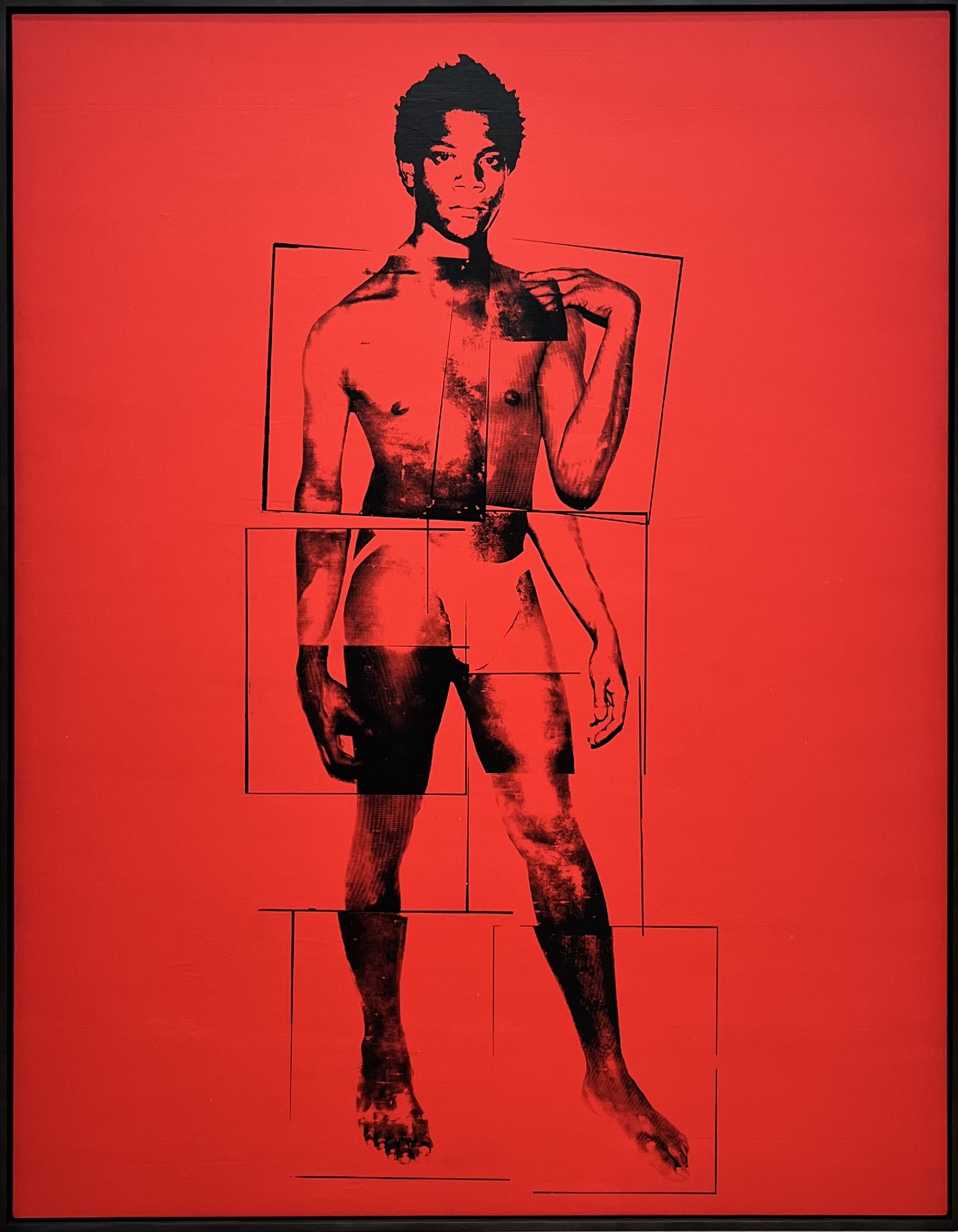 The first thing you see on entering Lévy Gorvy Dayan’s Beaux-Arts style townhouse on East 64th Street is a monumental silkscreen portrait of Jean Michel Basquiat wearing nothing but a jock strap. Set against an electric red background, the subject is rendered in black, a collage of snapshots pieced together slightly off kilter, but enough to portray an artist whose genius is not perfectly formed. In this 1984 portrait of Basquiat, his friend and collaborator, Andy Warhol, captured everything about ’80s art: the need to shout above cultural noise, the wholesale packaging of sexuality, the anxiety beneath all that manic energy and the commodification of, well, everything. Warhol stretched his appropriation techniques to capture a moment when artists were succeeding by their own rules amid ceaseless competition in the media-saturated landscape exploding all around them.