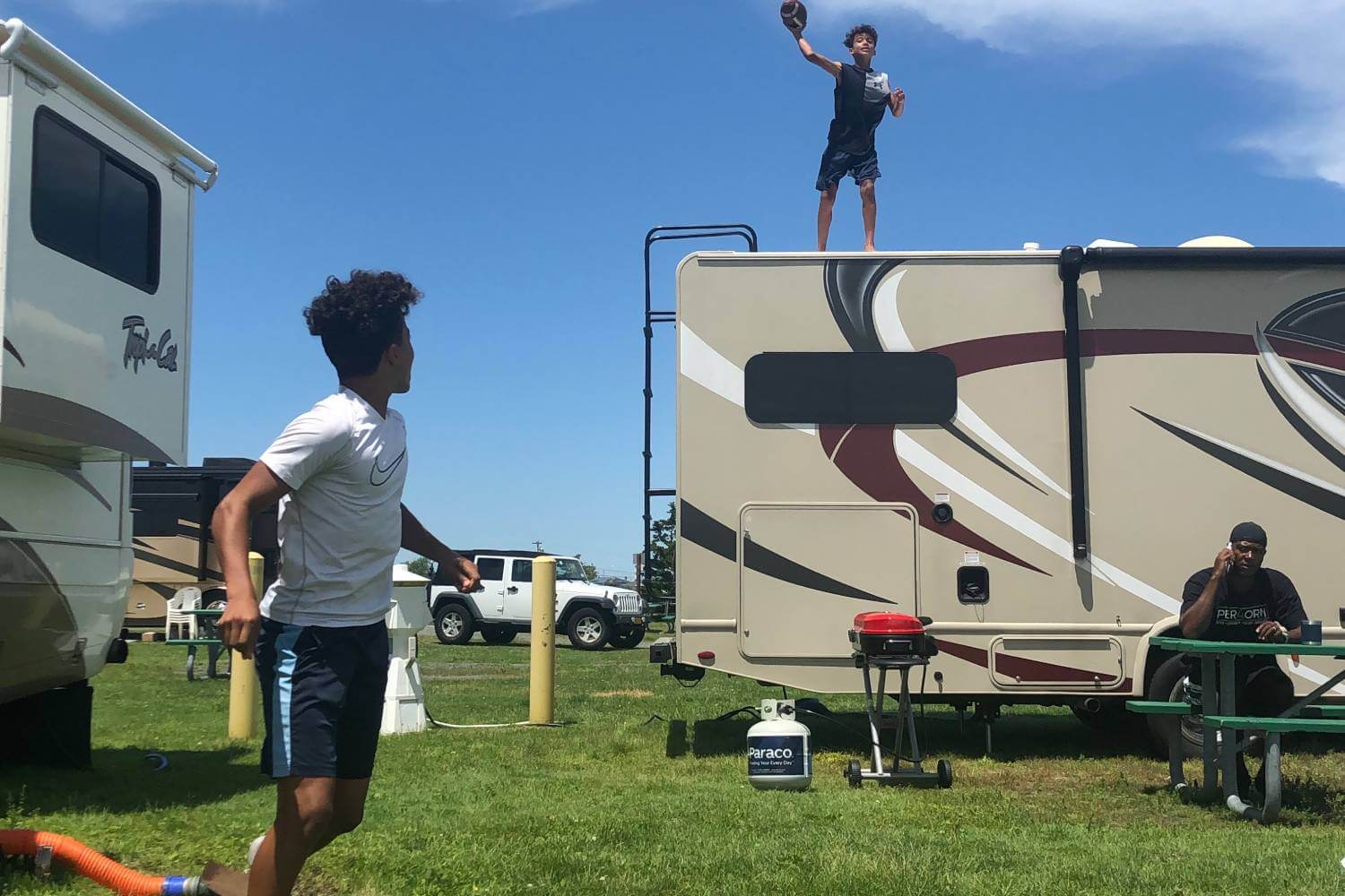 That meant Jordan skipped the summer 7-on-7 football scene, basically ending any chance of getting seriously recruited for that sport before he could get started. It also meant sleeping in an RV owned by his grandparents. But the 32-foot beige motorhome had barely been used, and it came cheap compared to renting in Long Island for the summer. Kristen Faison once researched rental properties and found some for $3,000 per month, which seemed too good to be true.
