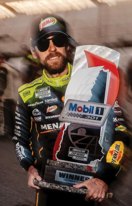 Ryan Blaney posing with trophy after winning NASCAR Cup Series Race at New Hampshire Motor Speedway. Photo courtesy of @ryanblaney10 on Instagram