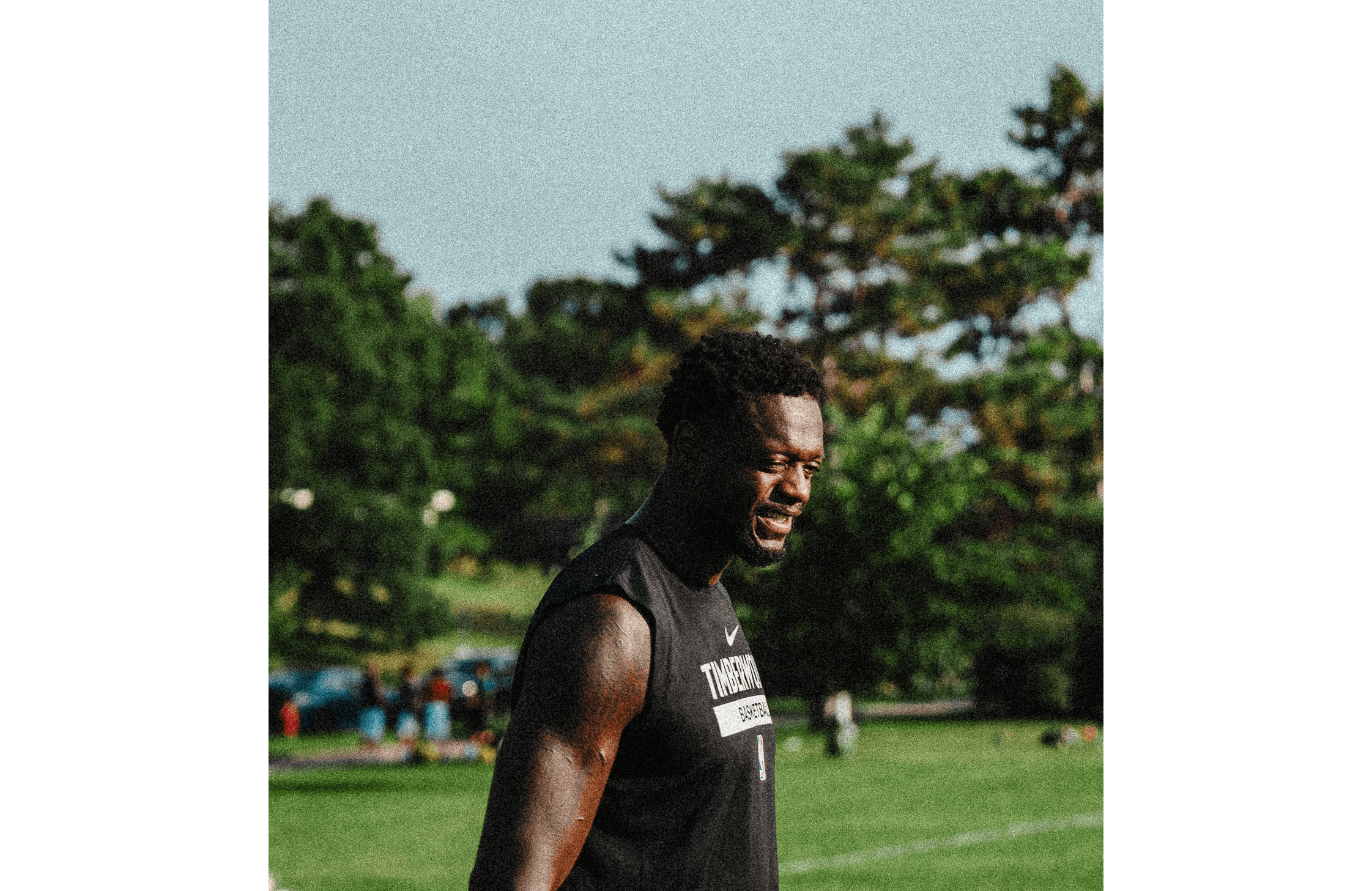 His oldest son, Kyden, is the quarterback. He towers over his teammates while his 6-foot-9 father watches a play develop from behind the defense. Julius does push-ups with the kids as faux punishment when one shows up a few minutes late and runs a lap with the team as atonement for the loss the previous weekend. The smile never leaves his face.