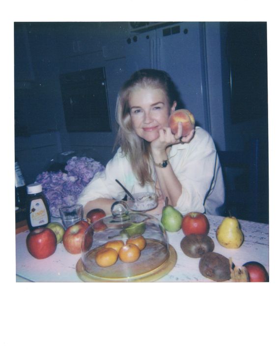 When I visit Britton’s apartment, which she’s subletting from a friend on the Lower East Side, she starts cutting up an Asian pear and loading the pieces into a small blue plastic chopper. “I dated a guy in Berlin who turned me on to this little chopper, and now I use it all the time,” she says. Most days, her first meal of the day is a bowl of bircher muesli, which she makes with sheep’s-milk yogurt mixed with oats, flax, chia seeds, grated apples and pears, walnuts, pepitas, coconut, cardamom, and a few slices of underripe banana (“When it’s still a little green, it has more fiber,” she says). It’s a recipe she created with her gut microbiome in mind. “I went on ChatGPT and I asked it to tell me every single fiber that I’m using, and which specific microbes it’s feeding, because there are so many different ones, and they can affect your brain activity, or energy, hormones, skin … even things like optimism and hope.” For optimal gut health, she tries to eat 30 different plants a week.