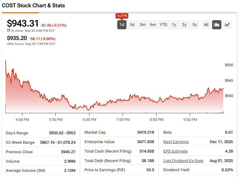 Costco Wholesale reported stronger-than-expected fiscal fourth-quarter earnings, with profit rising to $2.61 billion, or $5.87 per share — beating Wall Street’s consensus by $0.07. Net sales for the quarter climbed 8.0% year over year to $84.4 billion, up from $78.2 billion a year ago, though total revenue came in $1.66 billion below analyst forecasts.