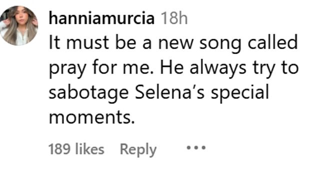 ‘It must be a new song called pray for me. He always try to sabotage Selena’s special moments,’ theorized a different person.