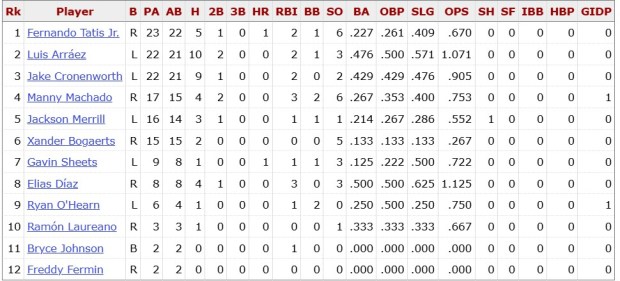 The only regular not in Sunday’s lineup is Luis Arraez, as Jake Cronenworth will serve as the DH, Jose Iglesias will get the start at second base and Ryan O’Hearn will man first base and bat second.
