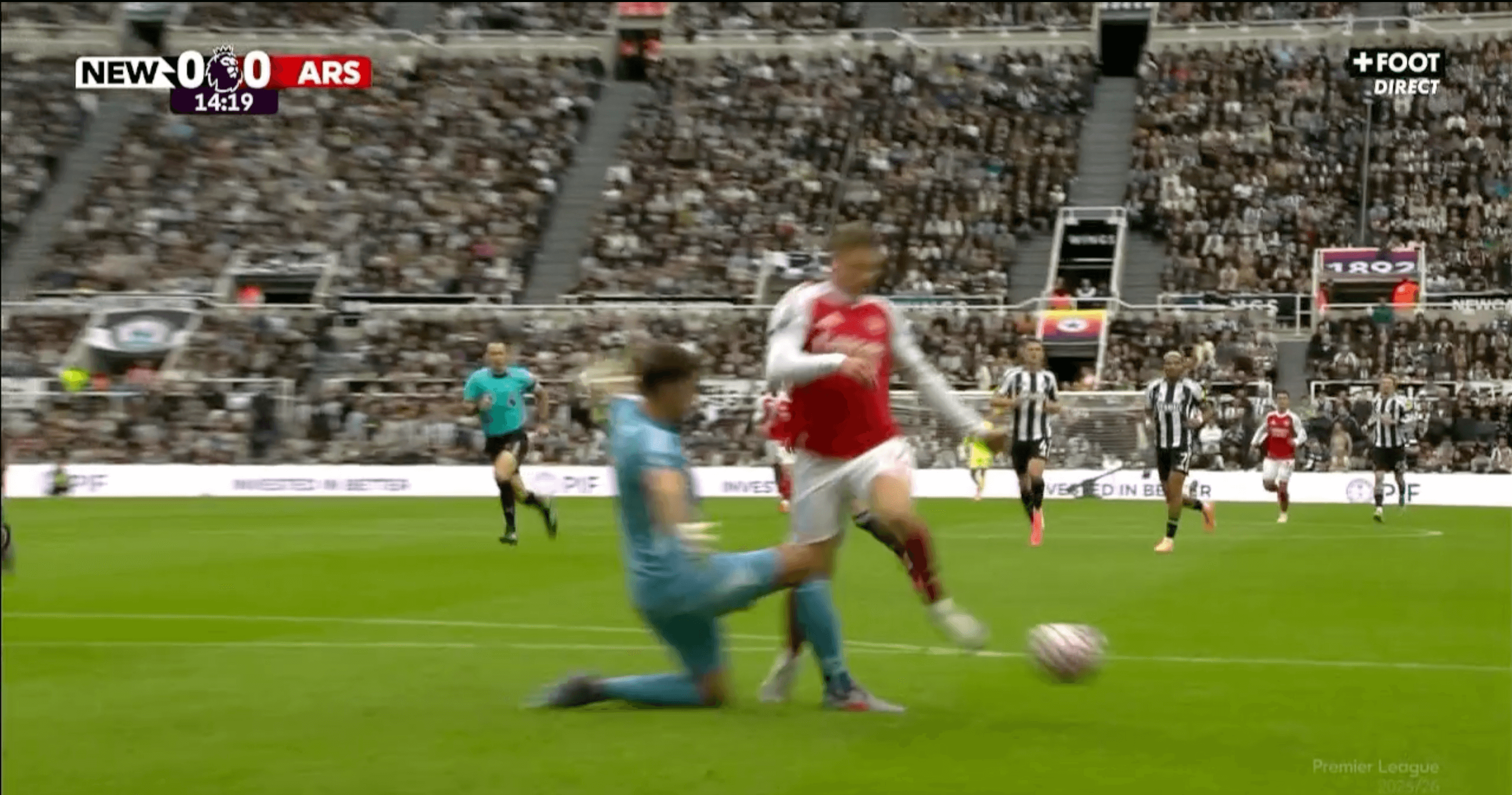 Calafiori, it appeared, had taken it from Newcastle’s goalkeeper.