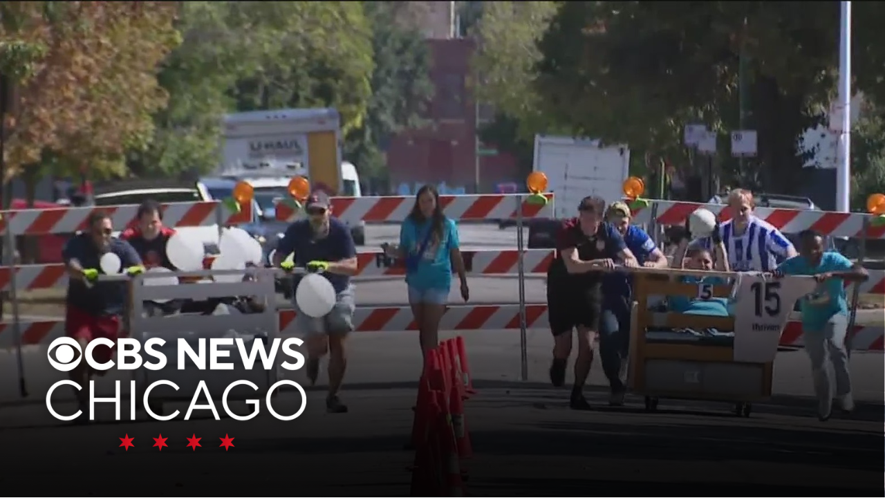 Dozens of people gathered for the first-ever Great Chicago Bed Race in West Town.