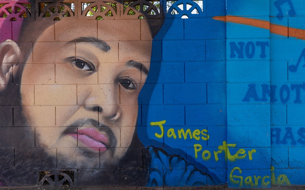 A mural of James Porter Garcia in Phoenix on April 23, 2025. Garcia was shot and killed by Phoenix police in 2020. The mural was completed by Poder in Action, a progressive civic group that has sponsored other murals in the Phoenix area in collaboration with families of police violence victims. (Photo by Alessandra De Zubeldia/Howard Center for Investigative Journalism)