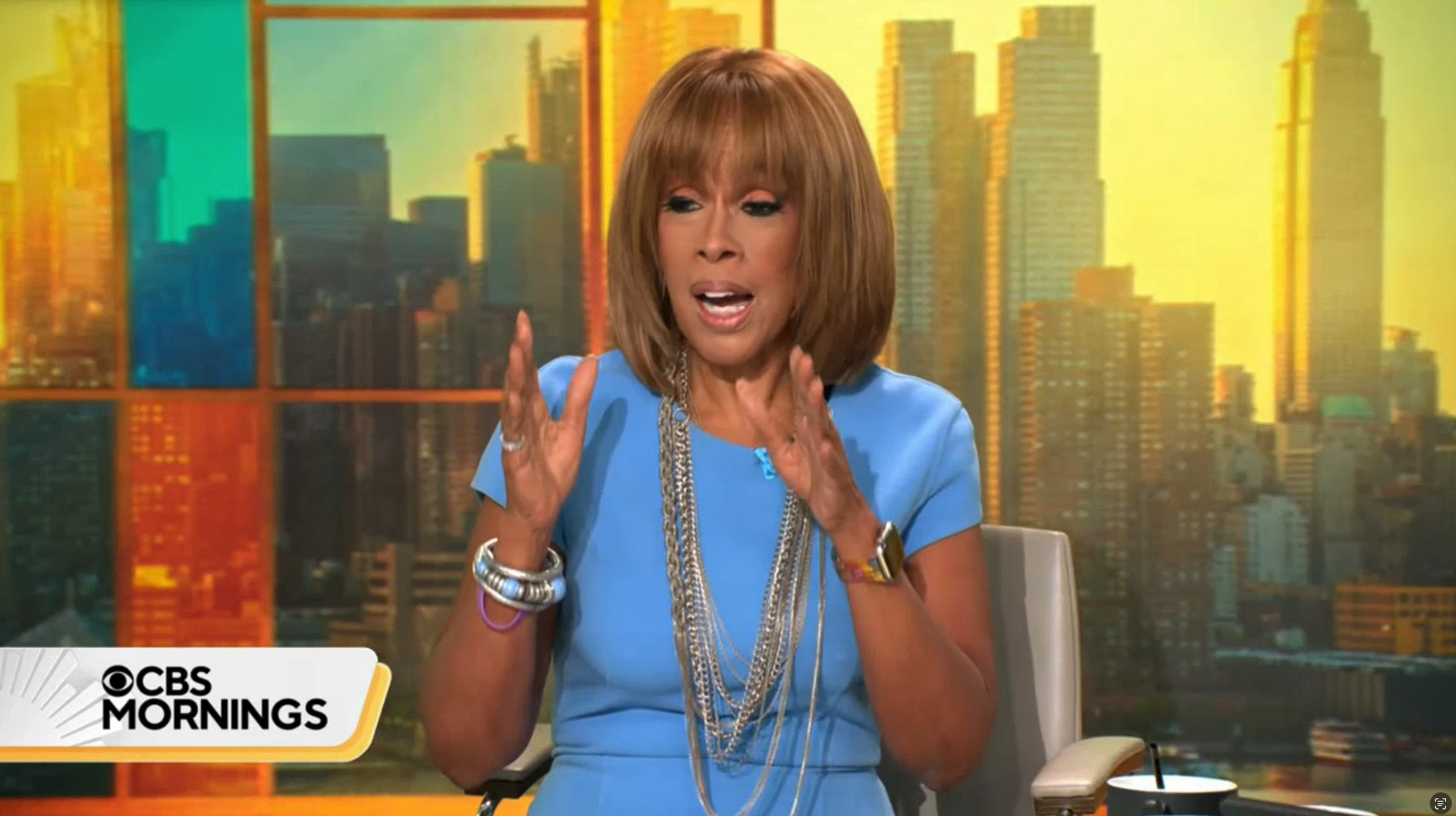 The show still opens with the anchors sitting in front of a simulated New York City skyline that appears as though it’s behind windows, though this is actually an image designed to create the appearance it’s more studio.