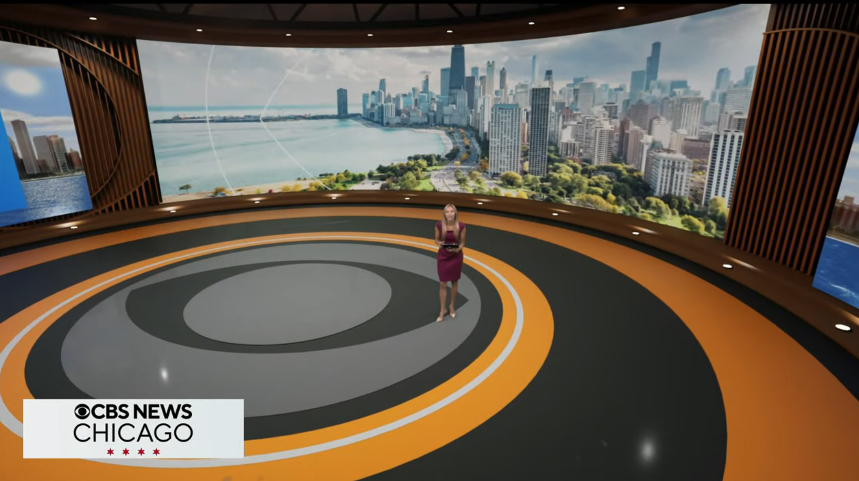 This view, taken from CBS-owned WBBM in Chicago, shows the station’s virtual set in use for a weather hit during ‘CBS Mornings.’ Other CBS-owned stations have similar looks.