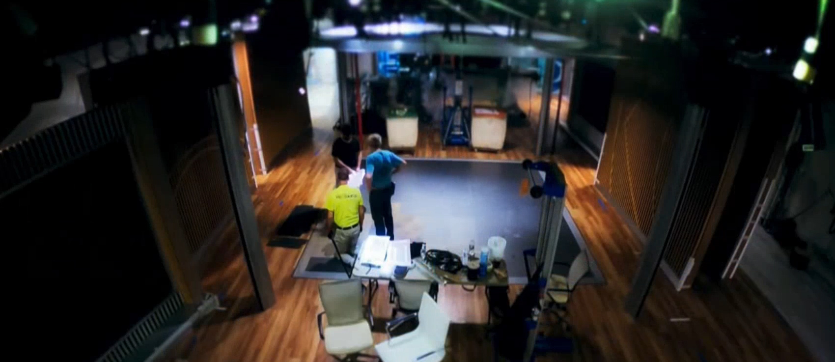 There is also a landscape-orientation panel camera center between the two anchors that provides a place to park a subtle version of the show logo.