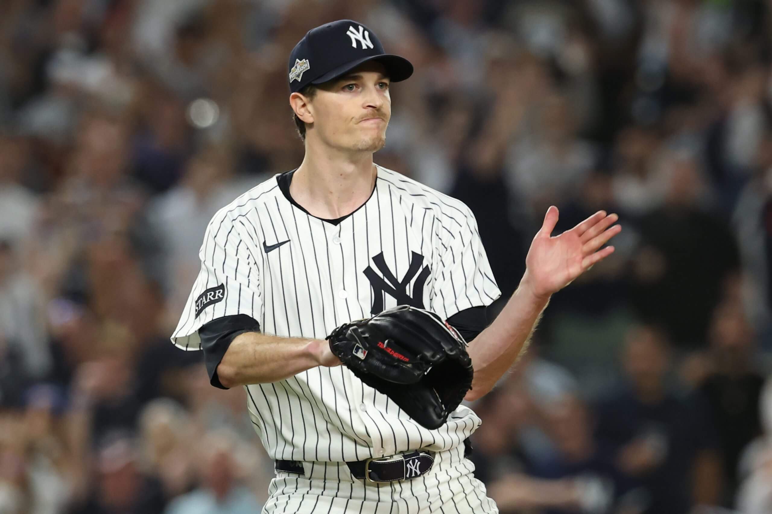 In his first career postseason start after four relief appearances for the Chicago White Sox in 2020-21, Crochet dominated. He allowed one run (Anthony Volpe’s solo homer) on four hits, one walk and 11 strikeouts over 7 2/3 innings, retiring 17 batters in a row before an eighth-inning single, then handing the ball over to Chapman to finish the frame.
