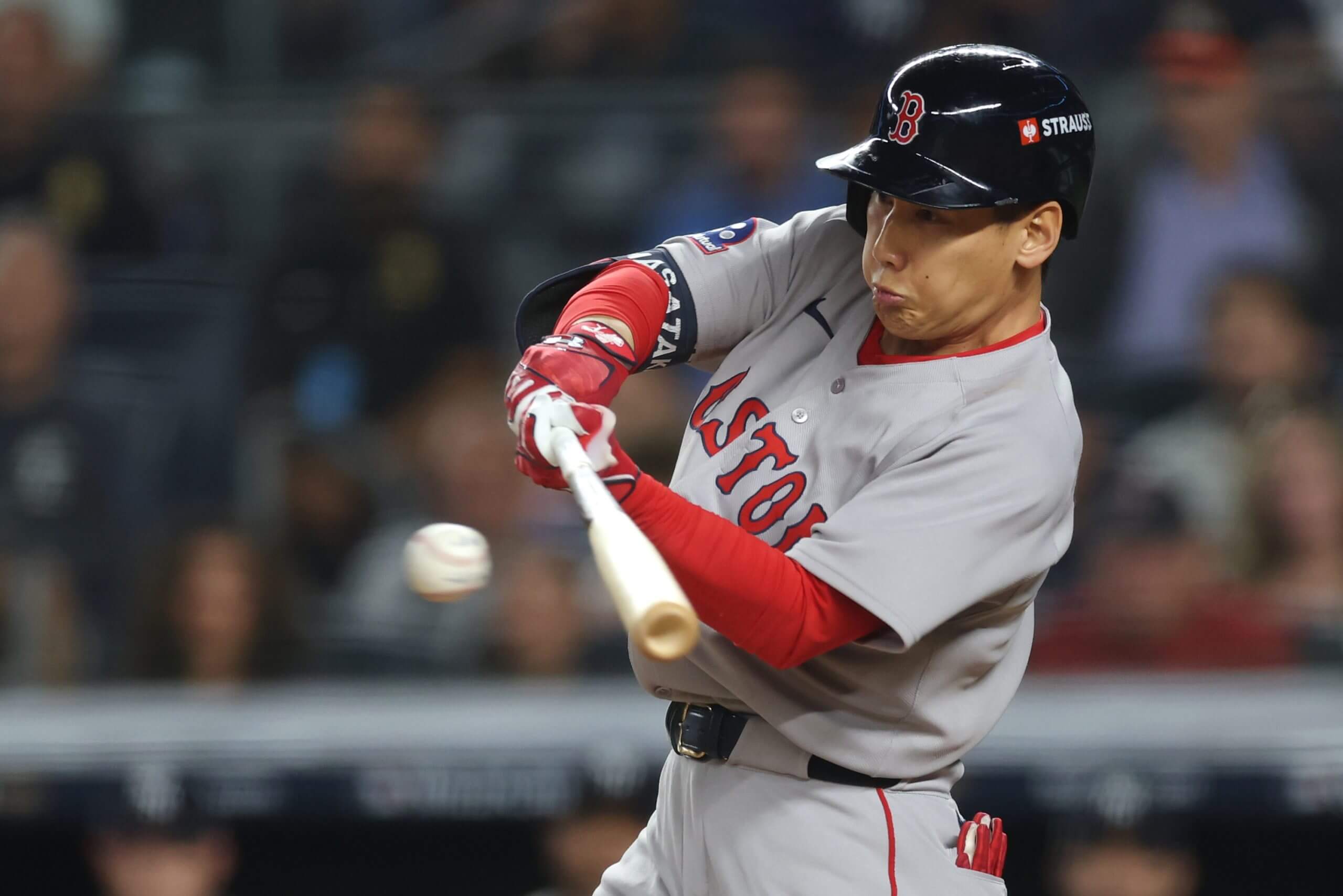 Masataka Yoshida’s hits a two-run single off Luke Weaver in the seventh. (Ishika Samant / Getty Images)