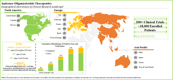 - Clinical Trial Analysis: An insightful analysis of clinical trials related to antisense oligonucleotide therapeutics, based on several parameters, such as trial registration year, trial phase, trial recruitment status, enrolled patient population, study design, leading industry sponsors / collaborators (in terms of number of trials conducted), trial focus, target therapeutic area and target genes.