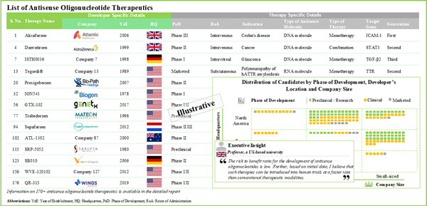 - Around 30 players from are presently engaged in evaluating the potential therapeutic benefits of antisense oligonucleotides for the treatment of a wide range of disease indications, worldwide.
