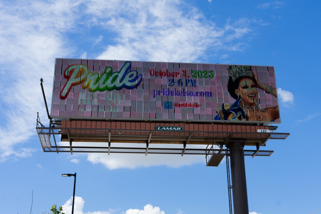 A digital billboard promoting Pride Kel-So shines on a large LED screen outside of a Sam’s Club in Keller on Sept. 23, 2025. (David Moreno | Fort Worth Report)