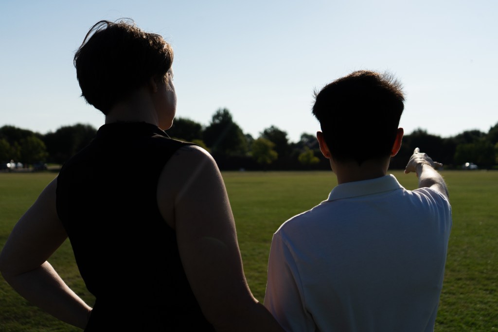 April and Shaina Dreyson discuss their proposed layout of Pride Kel-So during a walk-through on the Keller church’s 13-acre property Sept. 26, 2025. (David Moreno | Fort Worth Report)