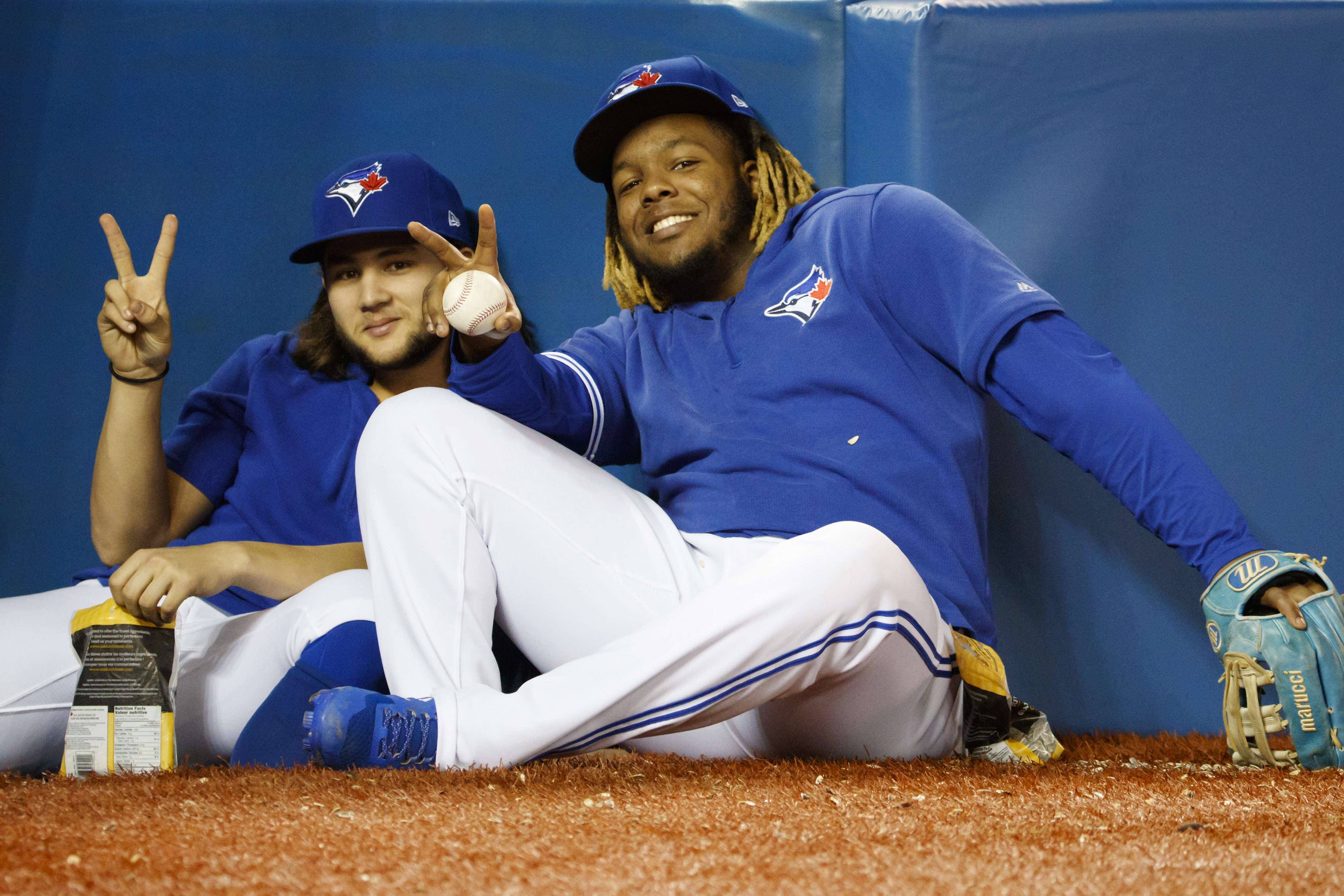 Bo Bichette and Vladimir Guerrero Jr. in 2019, the year they both debuted with the Blue Jays. (Cole Burston / Getty Images)