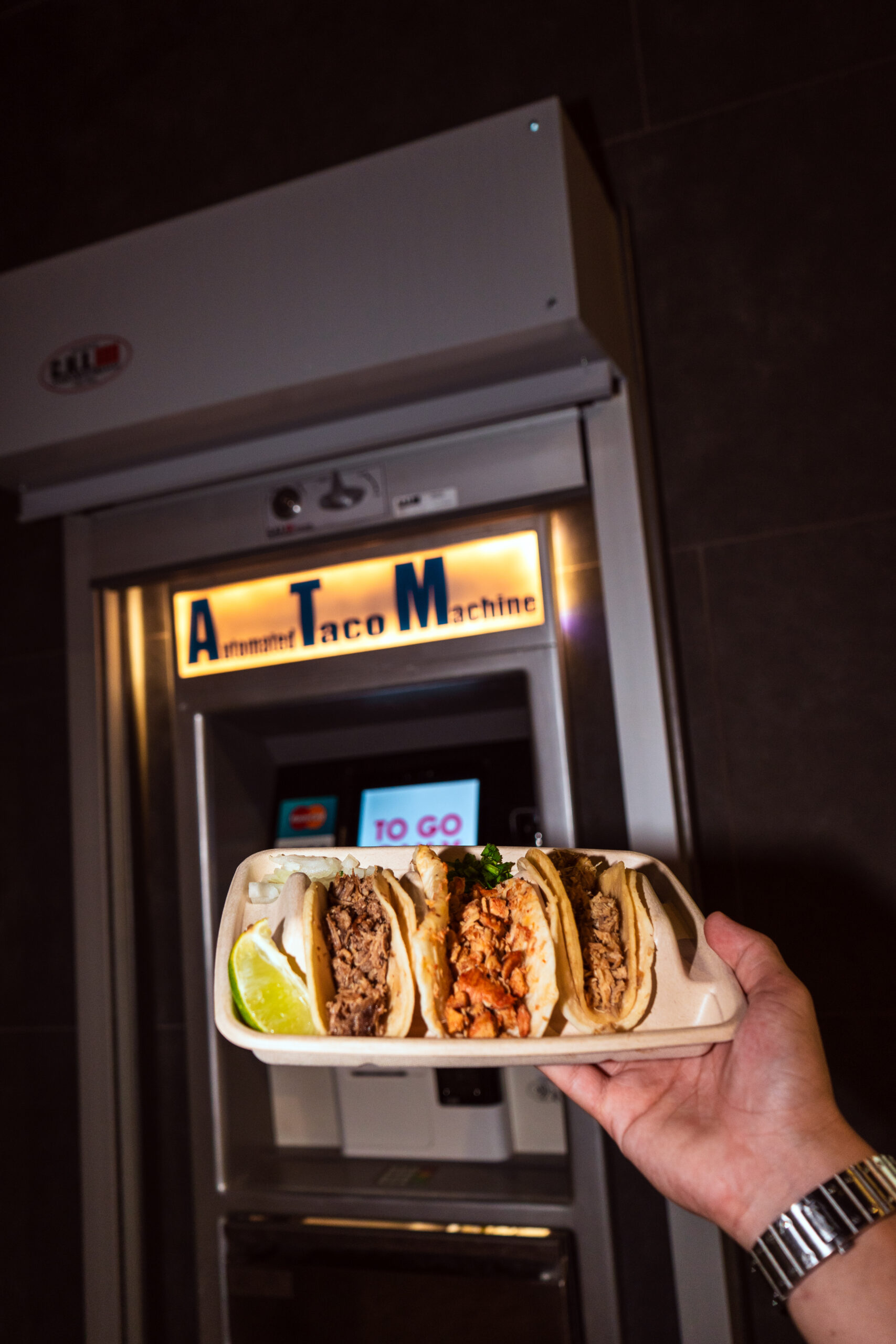 And if you need a late-night bite before heading home, No Vacancy has you covered. Two ATMs — Automated Taco Machines — stand ready to take your order and dispense hot tacos like cash. It looks like Bragdon has thought of everything.