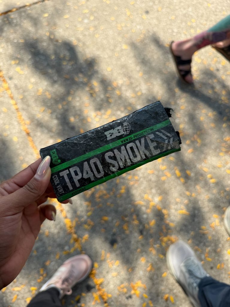 A smoke grenade dropped at the intersection of Armitage and Central Park Avenue by federal agents. Credit: Melody Mercado, Block Club Chicago