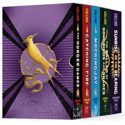 The Hunger Games 5-Book Hardcover Box Set includes the original trilogy starring Katniss Everdeen and the two prequel novels. The Hunger Games was published in 2008, and the two sequels, Catching Fire and Mockingjay, followed in 2009-10. After a 10-year hiatus, Collins returned in 2020 with The Ballad of Songbirds and Snakes. Set 64 years prior to Katniss volunteering as tribute, the novel focuses on Coriolanus Snow as a young man and the 10th Hunger Games. Sunrise on the Reaping follows Haymitch Abernathy, one of the District 12 tributes for the 50th Hunger Games, which takes place roughly 25 years before the original novel.