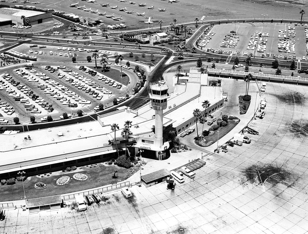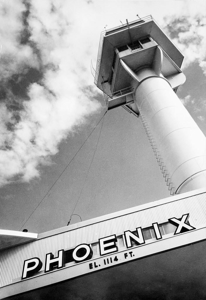 A unique angle of Sky Harbor’s tower in the 1950s.