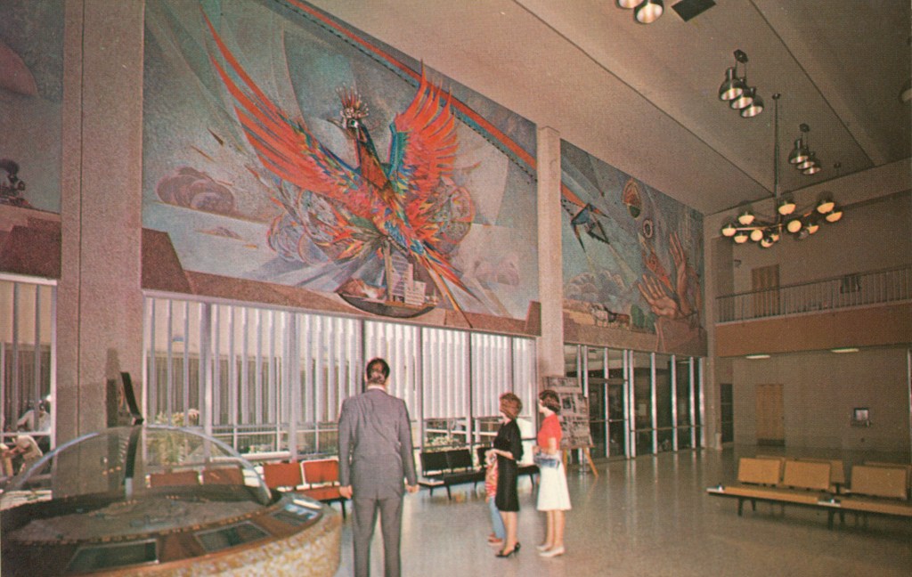 Terminal 1 was built in the early 1950s at a cost of $835,000, giving passengers a modern experience. The adjacent Terminal 2 followed in 1962, boasting polished terrazzo floors and Paul Coze’s iconic mosaic mural, “The Phoenix.” By then, Sky Harbor was welcoming upward of a million passengers a year.
