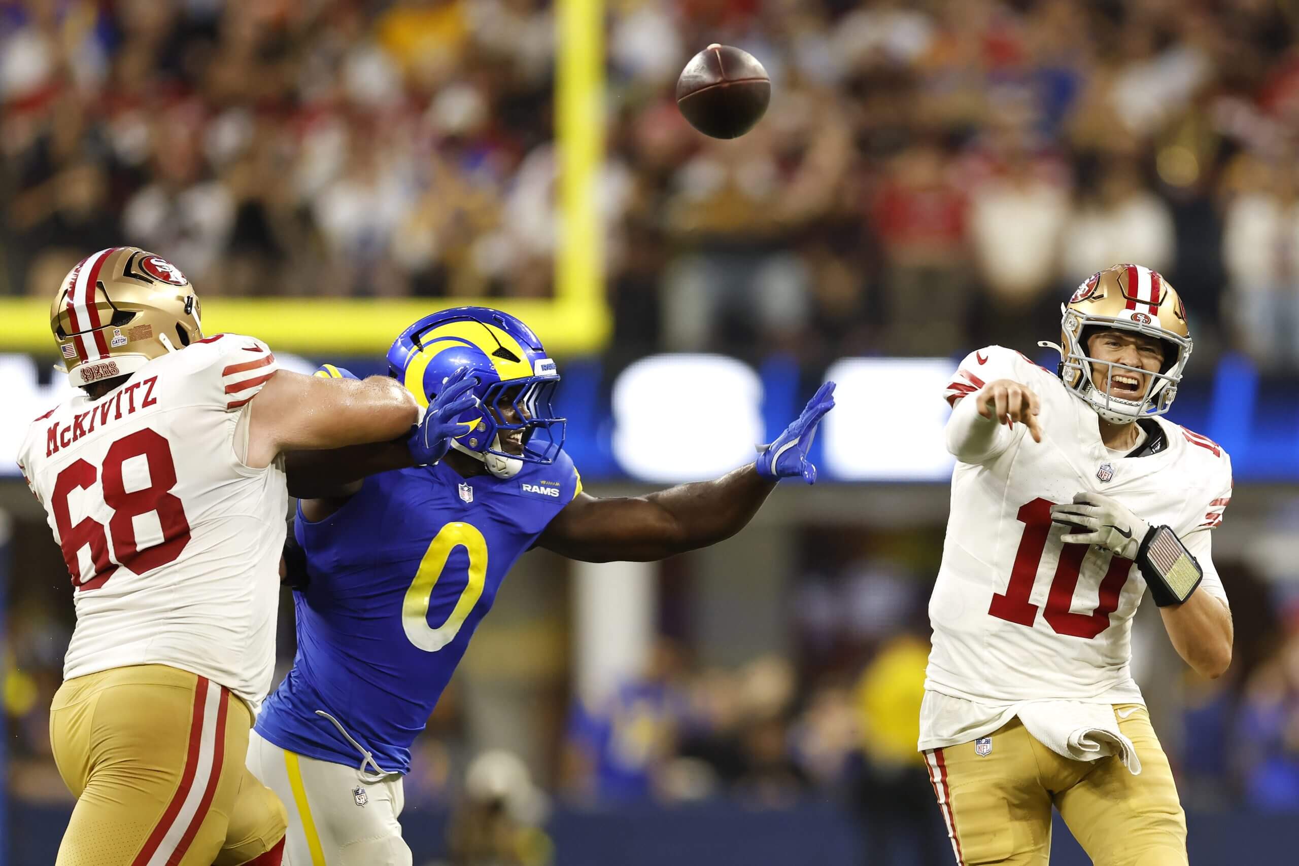 Quarterback Mac Jones led the 49ers past the Rams on Thursday night. (Ronald Martinez / Getty Images)