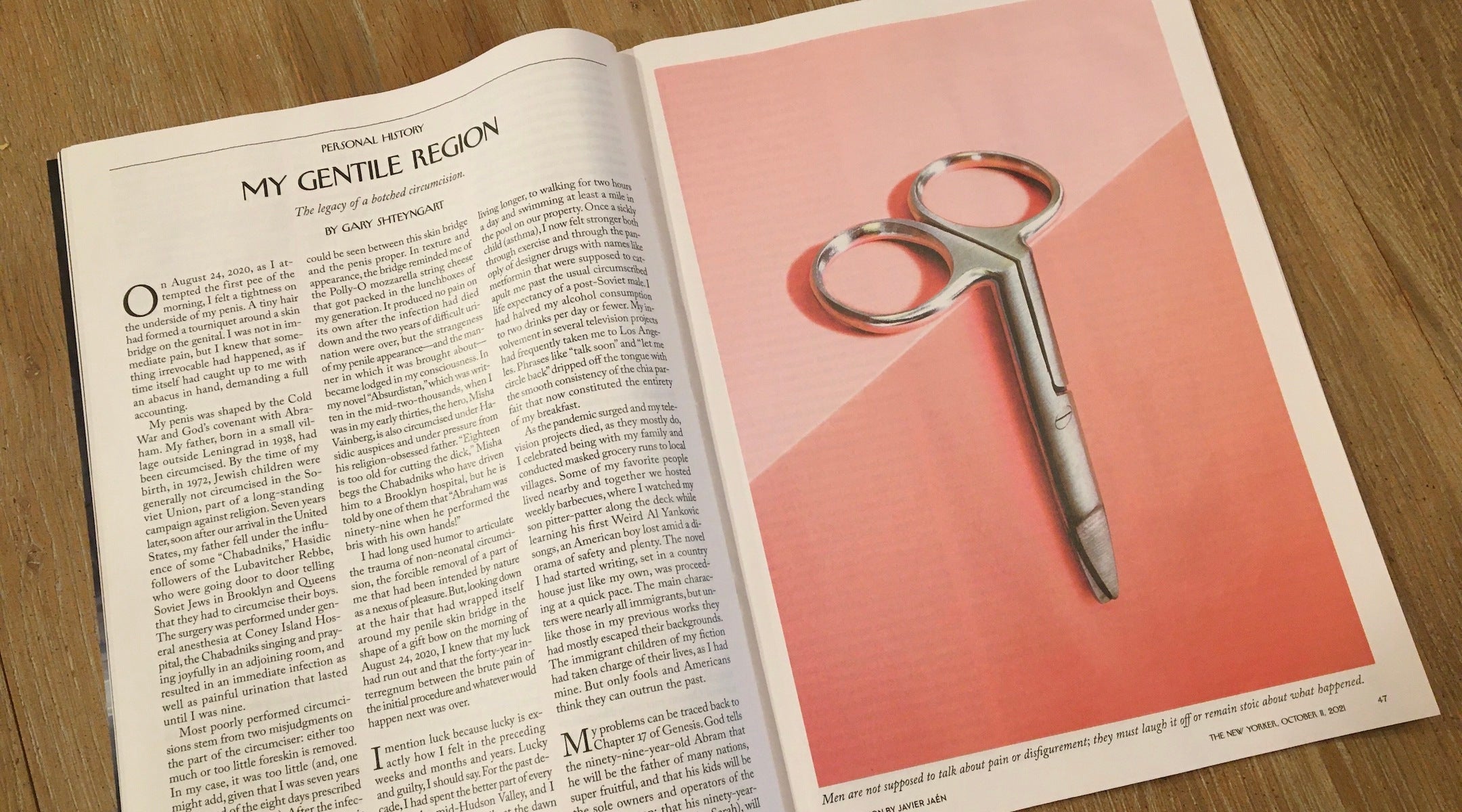 Gary Shteyngart’s original New Yorker article about his circumcision appeared in the Oct. 11, 2021 issue. (Jewish Week)