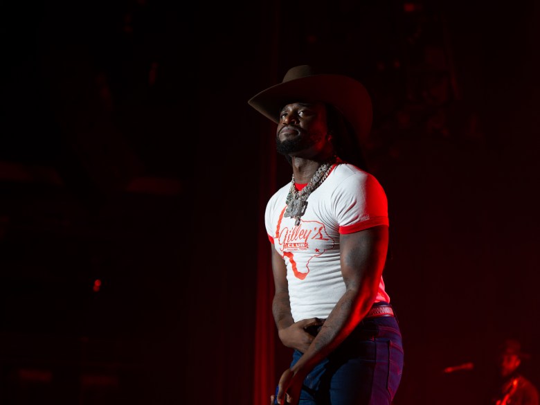 “I don’t know if this is too much,” exclaimed Shaboozey as he pointed at the chain hugging his neck. The country singer was dressed plainly in blue jeans and a T-shirt emblazoned with the logo for Gilley’s Club, the famous nightclub in Pasadena, Texas that ran for nearly two decades. What was not plain was the diamond chain with the initials “AD,” representing his American Dogwood record label. The piece caught the light throughout the night and glimmered even in darkness.