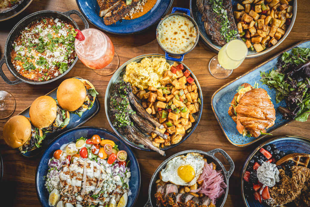 The brunch menu is a particular standout, with items like their massive Brunch Charcuterie Board. “It’s a massive board, 46 inches by about 14 inches wide. It’s designed to turn your head when you see it come out of the kitchen,” says Wright, noting that it takes two servers to carry it to the tables.